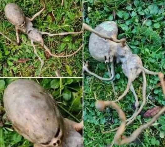 The homeowner, initially stepping out for a routine check of her garden, found herself paralyzed by the sight of a biological anomaly. To her eyes, the object was “downright alien.” It lacked the familiar symmetry of local flora and the recognizable anatomy of regional fauna. Instead, it possessed a grotesque, elongated structure that mimicked a skeletal skull, perched atop a spindly, narrow torso. Most unsettling were the appendages—long, cane-like limbs that jutted out at awkward angles where one would expect arms or legs. It was a monochromatic, desiccated-looking thing, appearing both organic and metallic under the shifting morning light.
